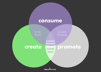 As a creator, if you can’t learn, curate or teach from what you’re consuming—you’re wasting your time. Instead, we need to be creating a content flywheel, balancing our consumption with creation and promotion.