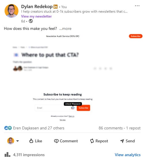 → Get quick feedback on landing pages, posts, newsletter issues, from me, Chenell, and our members.