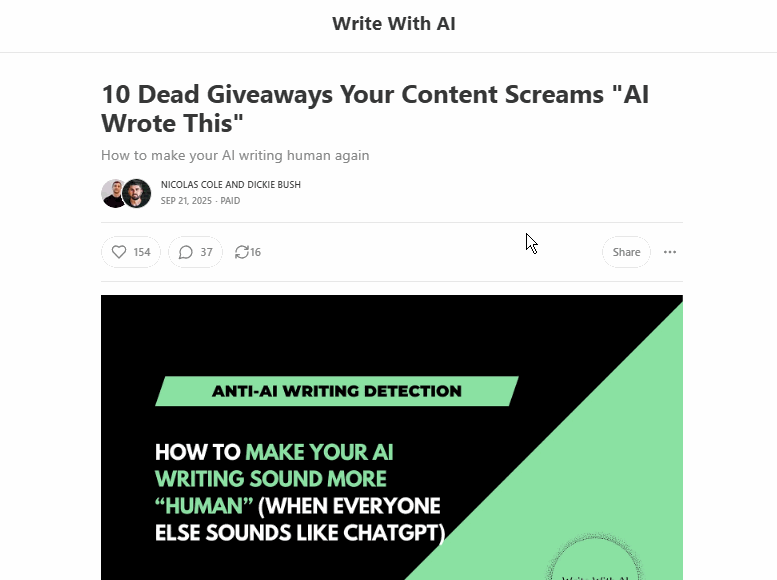 Look how much Dickie Bush & Nicholas Cole include in their posts before adding a paywall gate:
