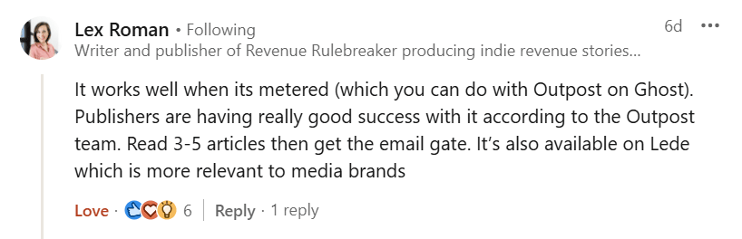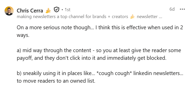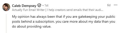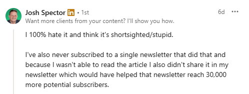 Here’s what I said in that LinkedIn post about gating free content. First, as a reader: